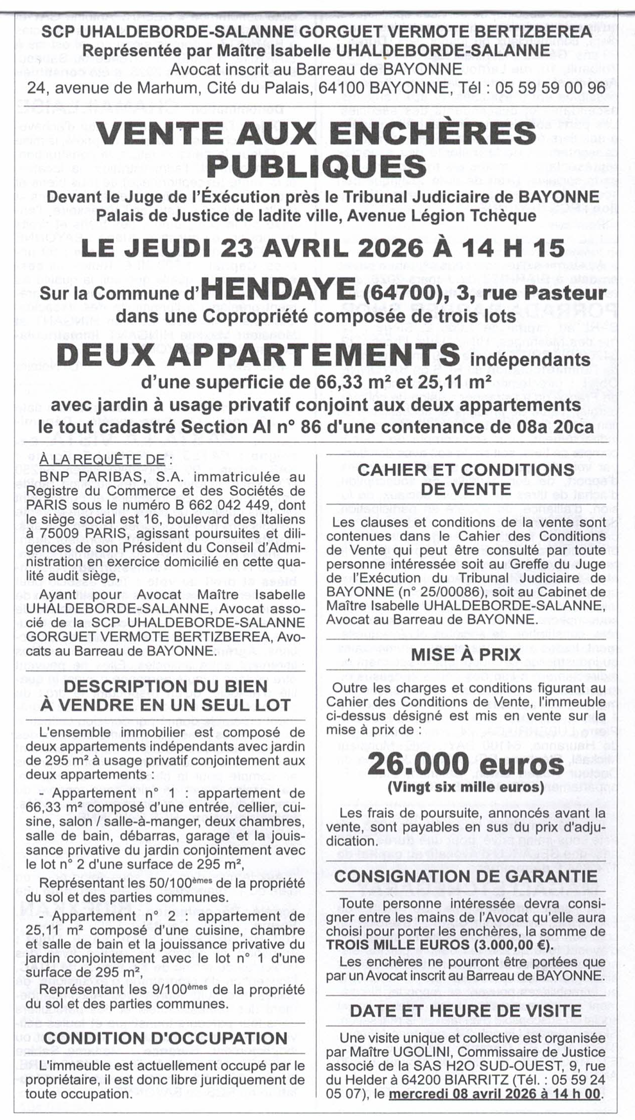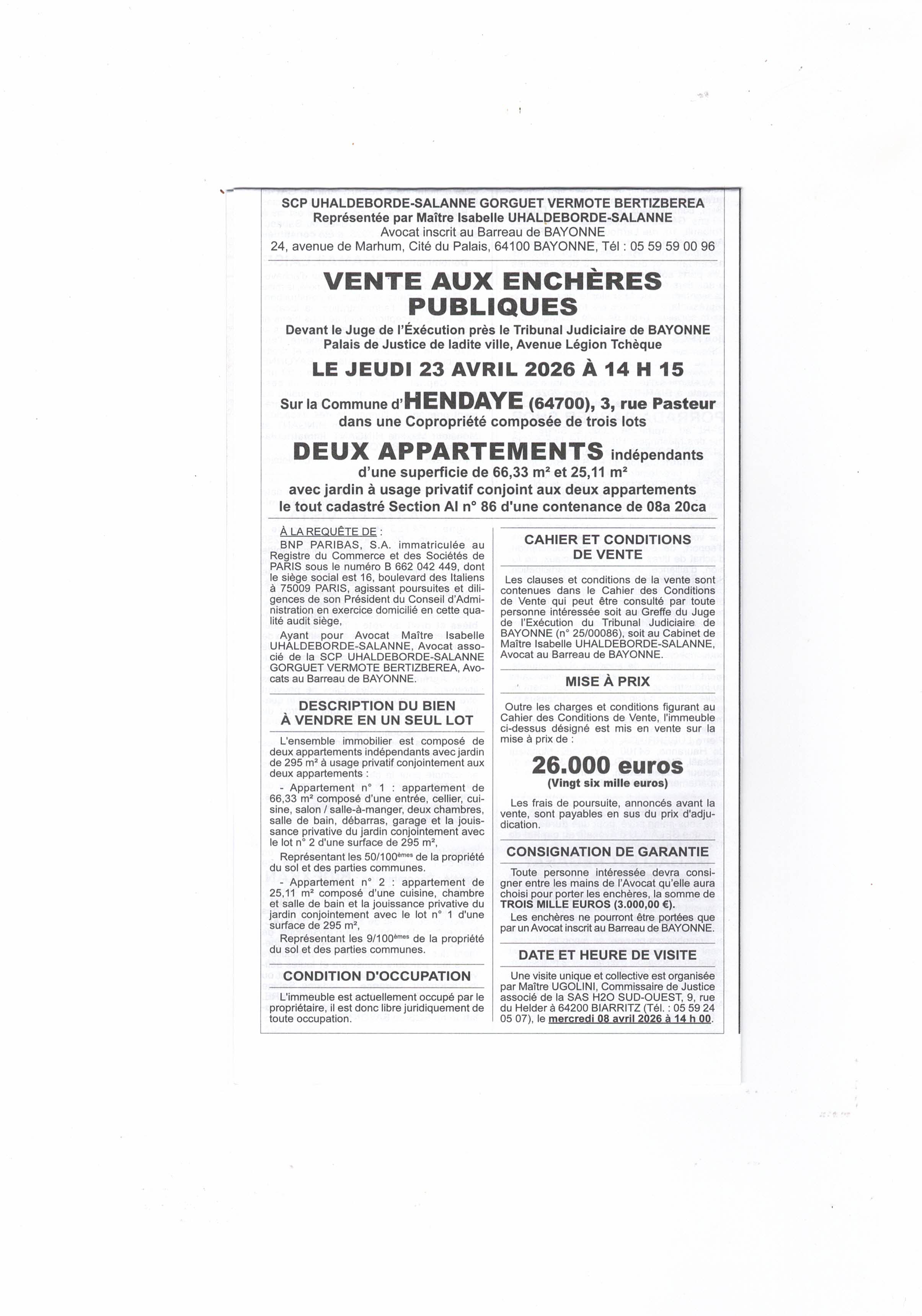 avec jardin à usage privatif conjoint aux deux appartements